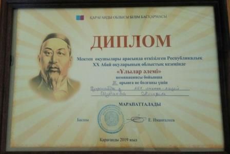 2019 жылғы  24  сәуірде  «№61 ЖББОМ» КММ базасында қалалық білім бөлімінің жоспарына сәйкес қазақ мектептеріндегі 5-10-сынып оқушылары арасында ХХ  республикалық Абай…