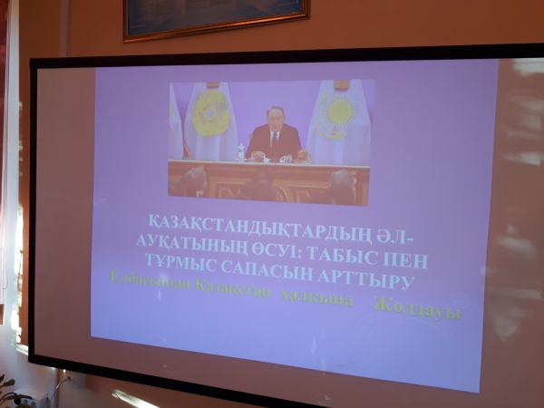 Мектеп-лицейінің 11 «А» сынып оқушылары «ҚАЗАҚСТАНДЫҚТАРДЫҢ ӘЛ-АУҚАТЫНЫҢ ӨСУІ: ТАБЫС ПЕН ТҰРМЫС САПАСЫН АРТТЫРУ» деп аталатын Елбасының Қазақстан  халқына Ж…