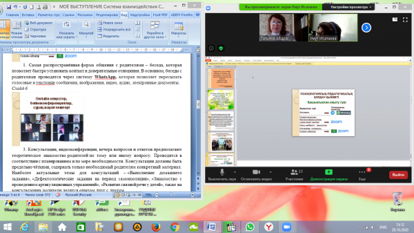 Қарағанды қаласының ӘК жоспары бойынша 20.10.2020 жылы «Ата-аналарға арналған мектеп» тақырыбында вебинар өткізілді.