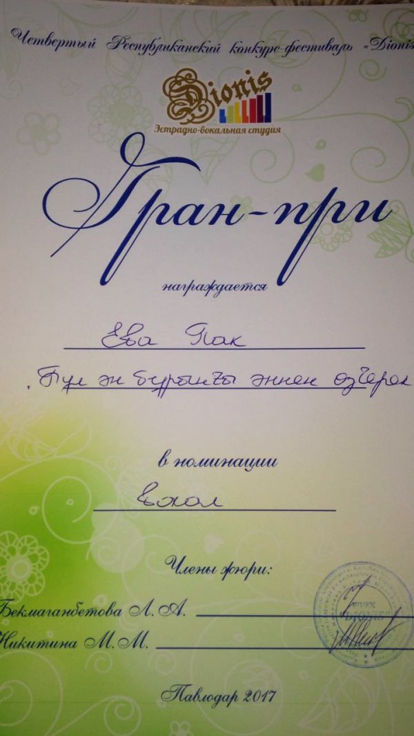 Біздің мектептің 5 «Б» сынып оқушысы Пак Ева   Повладар қаласындағы  4-ші Республикалық  «Dionis» вокалды конкурс фестиваліне қатысты, онда Абайдың…