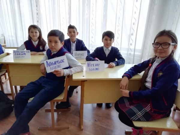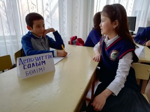 5а сыныбы 22. 02. 2019 күні қаржылық сауаттылық науқаны аясында "Банктің бір күнгі жұмысы " атты сынып сағаты өтті.