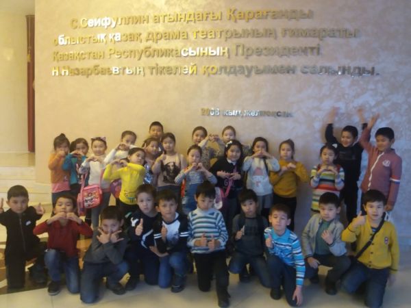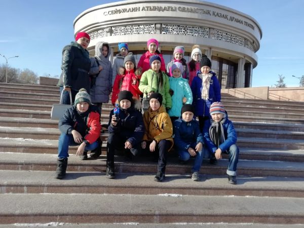 1 "В" және 2 "А" сынып оқушылары С. Сейфуллин атындағы драма театрындағы "Екі дос және делдал қарға" атты қойылымды тамашалады.