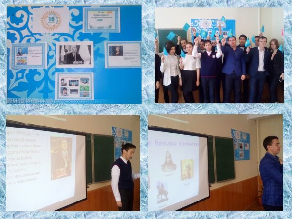 10 «А»сыныбында 14.12.2016 жылы Тәуелсіздіктің 25 жылдығына арналған «Менің Қазақстаным» атты сынып сағаты өтті. Оқушылар ел тарихына көз жүгірте отырып, Қазақстанның жетісті…