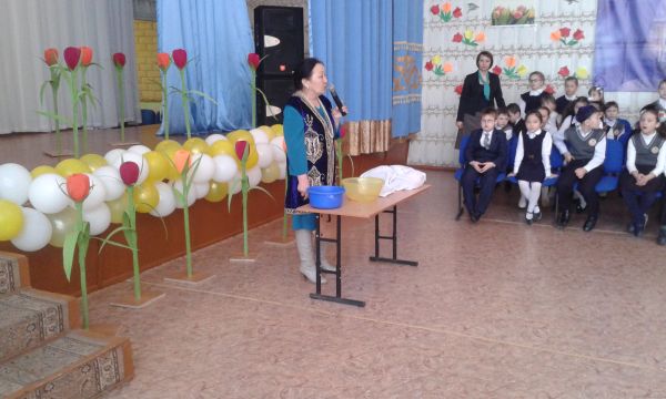 16.03.2016 жылы қазақ тiлі мен әдебиетi онкүндiгі аясында мектебiмiздiң акт залында 2 ауысым оқушылары үшiн "Наурыз мейрамы!" мерекелiк iсшарасы өткiзiлдi. 5-7 сынып оқушылары ән айтып, би…