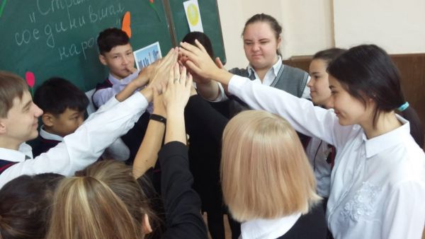 9.09.2019 года учащимися 10 "б" класса был проведен кл.час по теме "Страна , объединившая народы", посвященный празднованию Дню языков народов Казахстана .