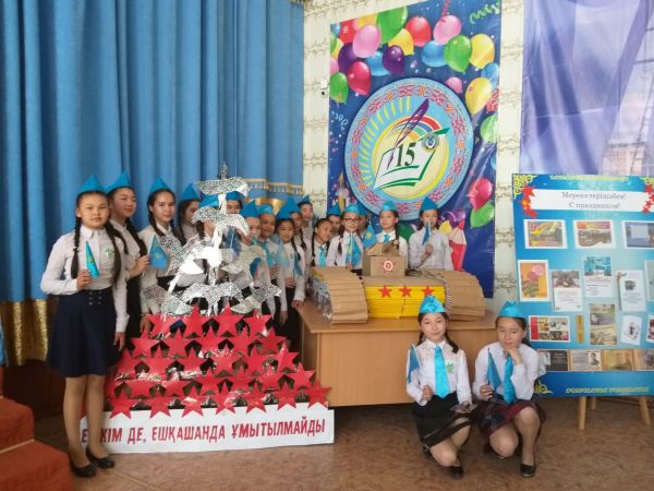 Ұлы Жеңіс мерекесі қарсаңында кітапханаға «Ешкім де, ешқашанда ұмытылмайды» атты көрме ұйымдастырылды. Соғыс жайында жазылған кітаптар қойылды.Оқушыларға көрмені, инсталляцияны тан…
