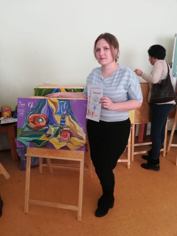 В ДШИ & 1 прошла городская олимпиада среди учителей Изо и Черчения (декоративный натюрморт с эффектом стилизации) учитель по изобразительному искусству и черчения Удод К. А заняла первое место.