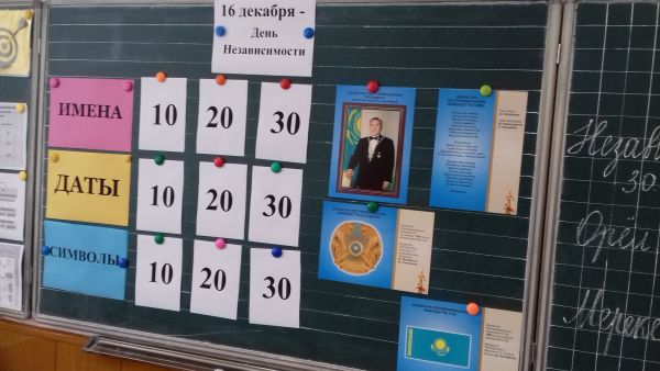 3 "А", 3 "Б", 3 "В" сыныптары арасында желтоқсанның 10-да "Тәуелсіздік таңы" атты сынып сағаты өтті. Мақсаты: Тәуелсіздікке қалай қол жеткенін зерделеу, 1986…