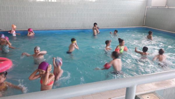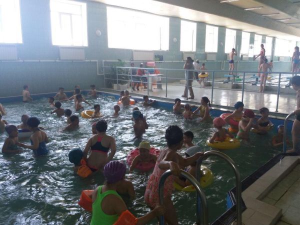 №77 мектебіндегі бассейінге түсу сәтінде.