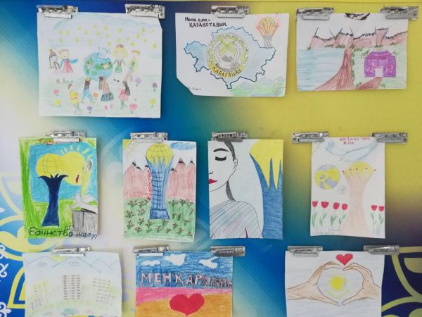 Прошла выставка рисунков среди учащихся 4-6 классов 01.05.2018 ко дню единство народов Казахстана.