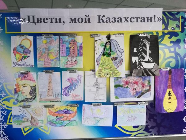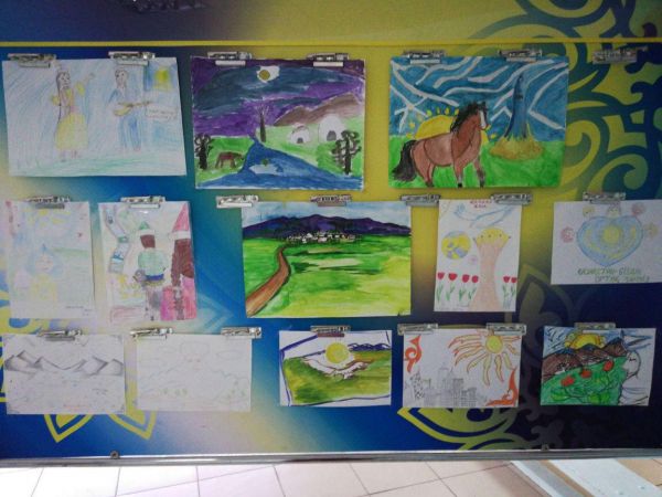 21.04.18 прошла выставка рисунков ко дню "Рухани жаңгыру" среди учащихся 4-6 классов.
