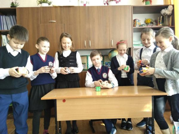 Ученик 3 "Д" класса Егоров Антон увлекается кубиками.Собирает один за 46 секунд! С большим удовольствием обучает своих одноклассников на переменах.