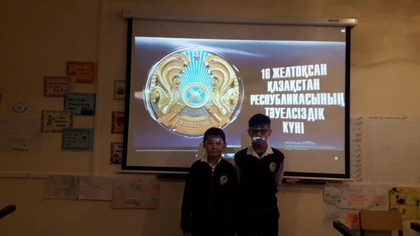 В 5"В" классе был проведен классный час в форме викторины,посвященный дню Независимости Республики Казахстан.