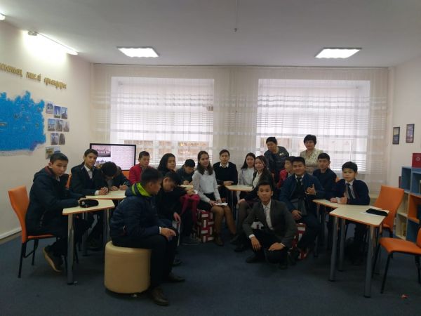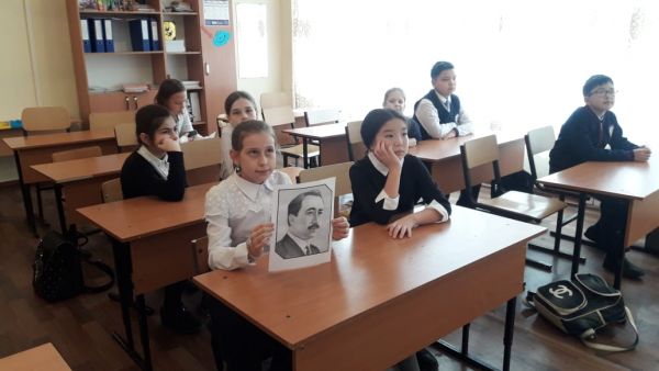 В 5"В" классе прошел классный час посвященный великому казахскому писателю и поэту Сакену Сейфуллину.