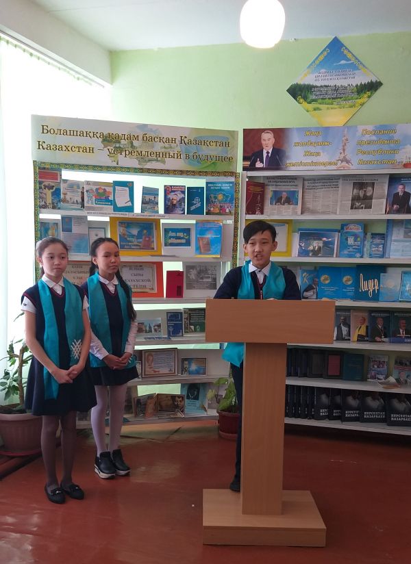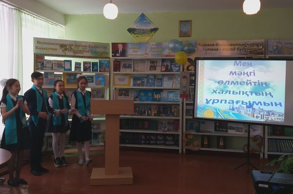 Тәуелсіздігі күні құрметіне орай кітапханада «Мәңгілік Ел – мұратым» атты 6 «А» сынып оқушыларымен патриоттық с…