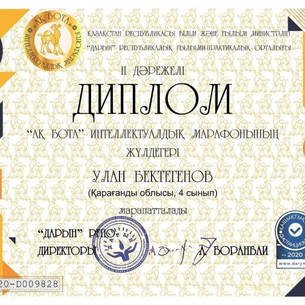 07.12. 2020 года, прошёл областной этап Республиканской предметной олимпиады среди учащихся 5-6 классов. Ученица нашей школы приняла активное участие в областной олимпиаде и показала свое мастерство…