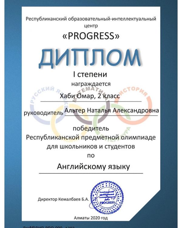02.12.2020 ж. 4 сынып оқушылары арасында өткен «CLEVER-2020» олимпиадасының V аймақтық облыстық кезеңі өтті. Оған мектебіміздің 4 «А» оқушысы Марат Жанкерей қатысты. Пән мұ…