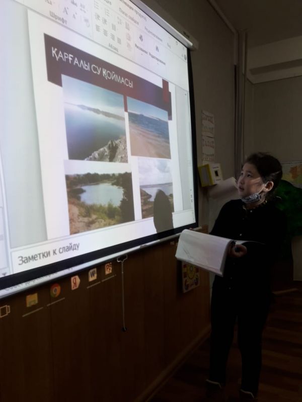 "Зерек" жобасы аясында оқушылардың жоба қорғау сәті.