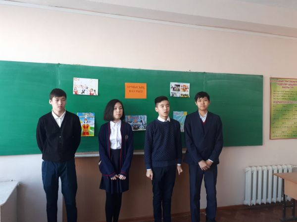 Арналған сынып сағаты ҚР-ның 14 наурыз Жемқорлықпен күрес күніне бағытталды. Оқушылар Елбасының биылғы жолдауынан үзінді келтіріп. өз ойларын еркін білдірді.