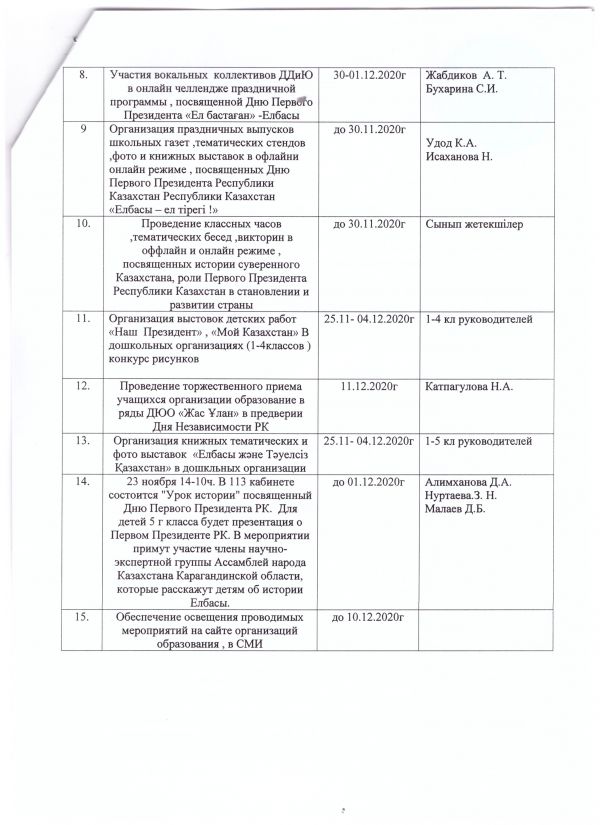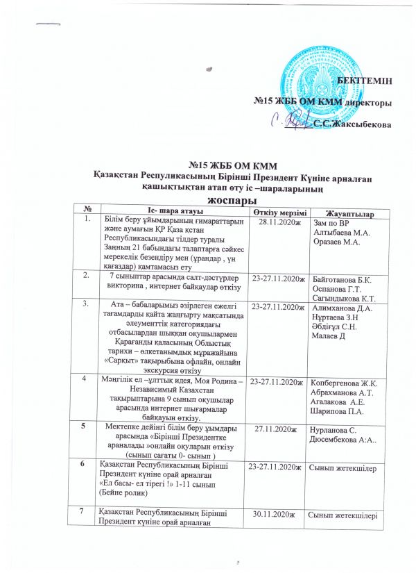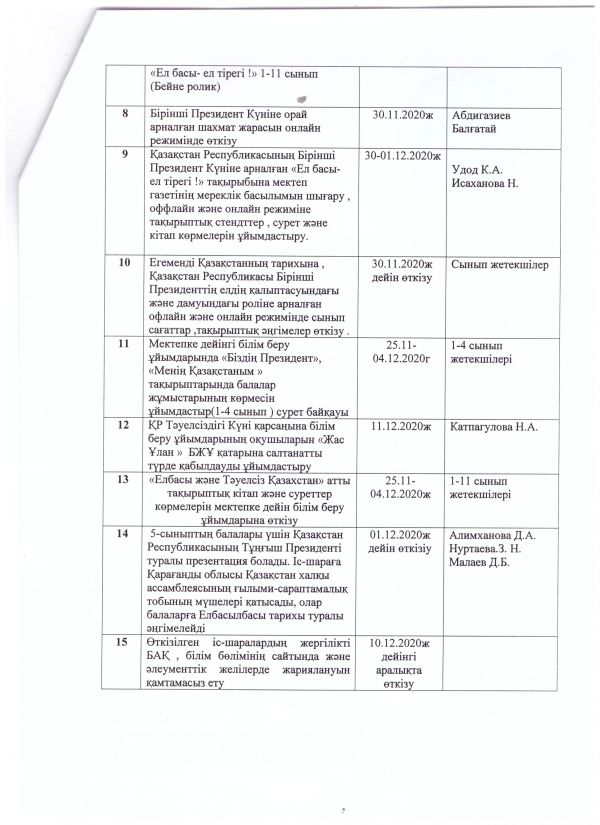 Қазақстан Республикасының Бірінші Президенті күніне арналған қашықтықтан атап өту іс- шараларының жоспары