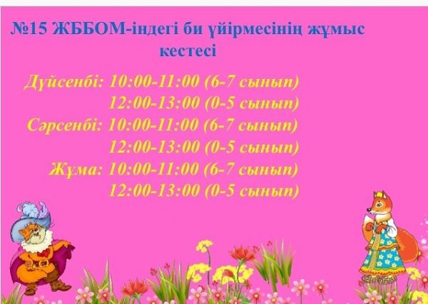 №15ЖББ ОМ КММ Қосымша білім беру үйірмесінің сабақ кестесі