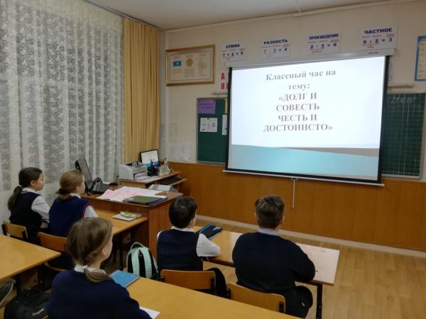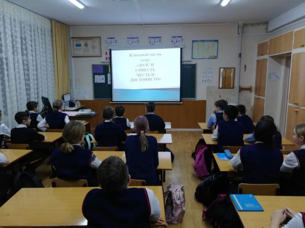 В 6 Г классе прошёл классный час на тему: "Долг и совесть,честь и достоинство".