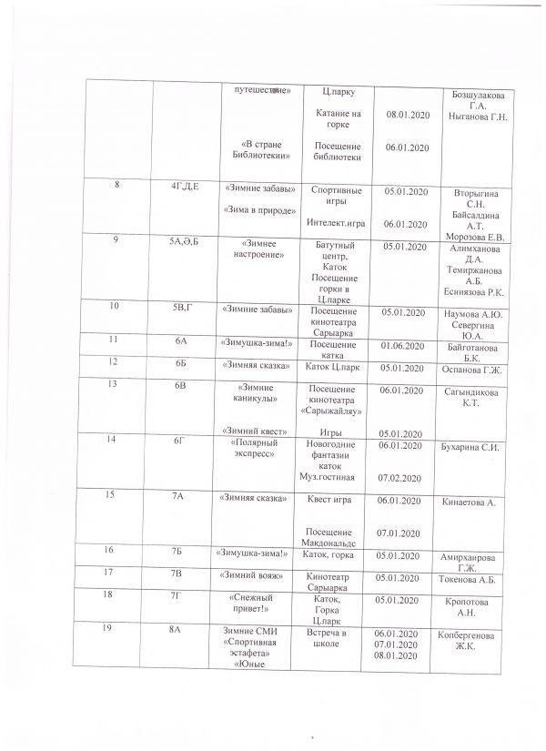 10 "А" сынып оқушылары қысқы демалыс кезінде.