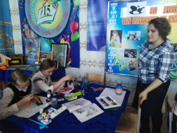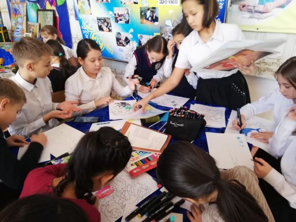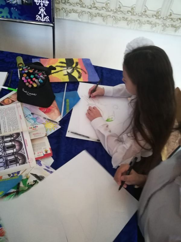 "Ұлы дала мұрагерлері" в актовом зале прошёл "Шеберлік қалашығы" под руководством учителя художественного труда Удод К. А