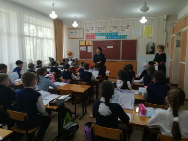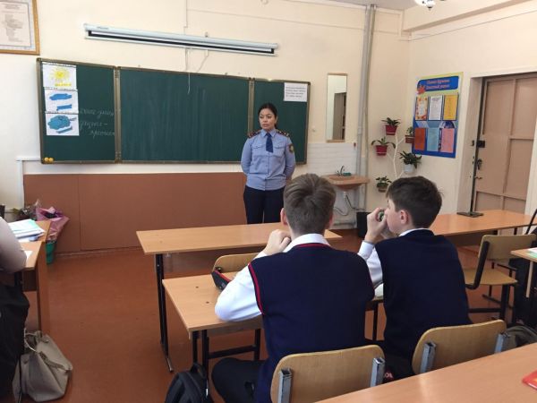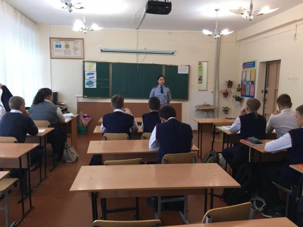Аймақтық инспектордың оқушылармен "Қауіпсіз интернет" тақырыбында әңгіме-сұxбат жүргізуі. Оқушылар инспектормен танысып, қажетті ақпарат алды