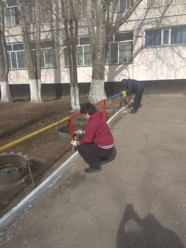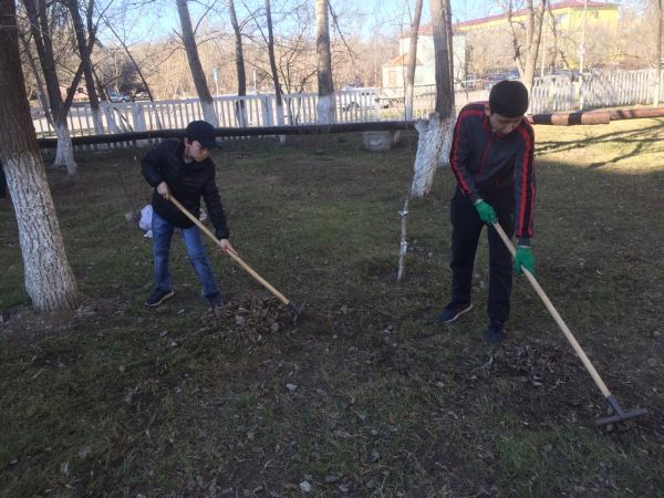 №15 ЖББ ОМ ауласын абаттандыру (жапырақтар мен қоқыстарды тазалау, жол жиектері мен ағаштарды әктеу) жүзеге асырылуда. 12.04.2019ж     Мектеп әкімшілігі мектеп ауласын көркейту мен абатт…