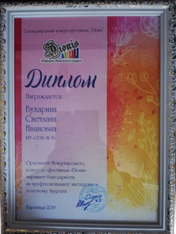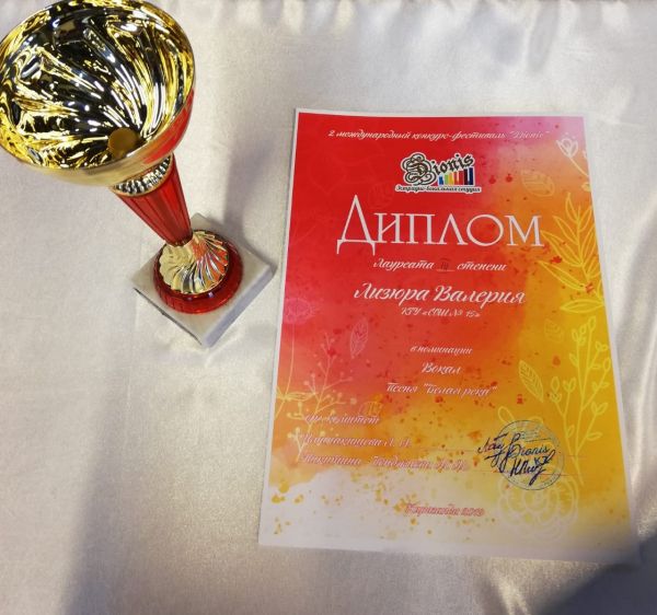 14.04.2019г. ученица 4 Д класса Лизюра Валерия участвовала во 2 Международном вокальном фестивале -- конкурсе DIONIS
