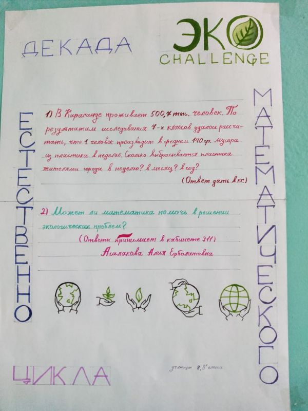 Ученики сош15 активно участвуют в акции "ЭКО Challenge" в рамках декады естественно математического цикла.