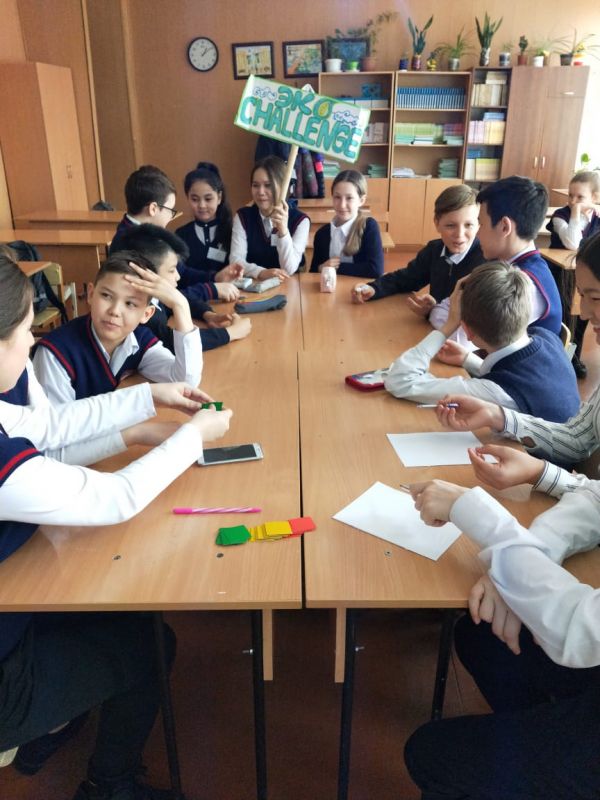 17.04.2019ж Мектебімізде Экочелендж жобасы аясында қалдық заттарды қайта өңдеу тақырыбында сыныптан тыс іс шара өткізілді