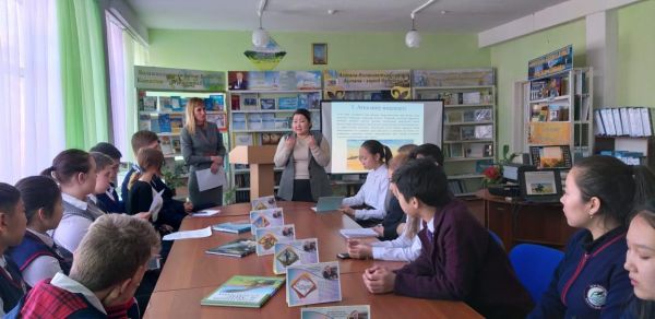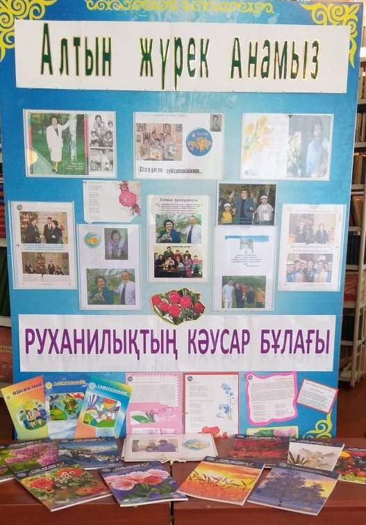 «Өзін-өзі тану» пәнінің онкүндігіне орай мектеп кітапханасында «Бөбек» қорының президенті, оқулықтың авторы Сара Алпысқызына арнап «Алтын жүрек Анамыз», «Ру…