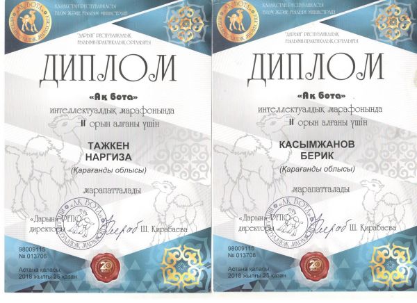 «Ақ бота» интеллектуалдық марафонында жетістікке жеткен оқушыларымызды құттықтаймыз!