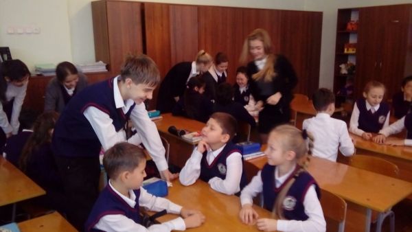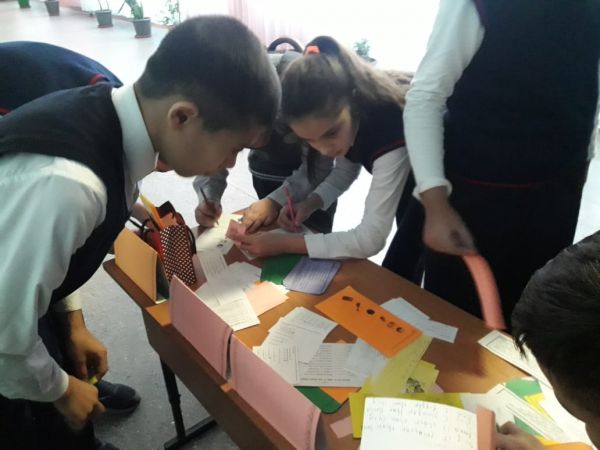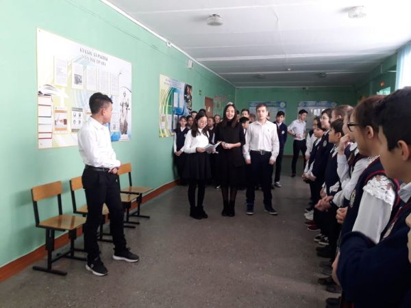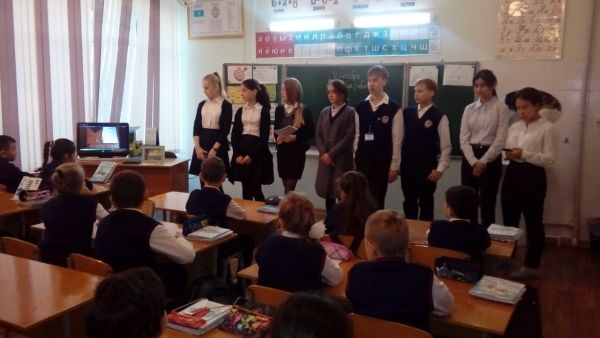 12.11.2018г. Стартовал школьный проект "Шаңырақ". Учащиеся 8"В" класса организовали встречу и провели классный час "Все краски мира" с учениками 4"Г".