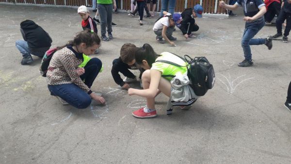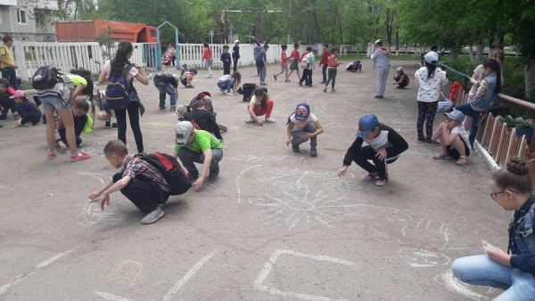 05.06.2018ж. мектеп жанындағы "Толқын" жазғы сауықтыру лагерінде "Шебер қолдар" үйірмесінде "Бақытты балалық шақ" атты тас жолға сурет салу конкурсы болды.