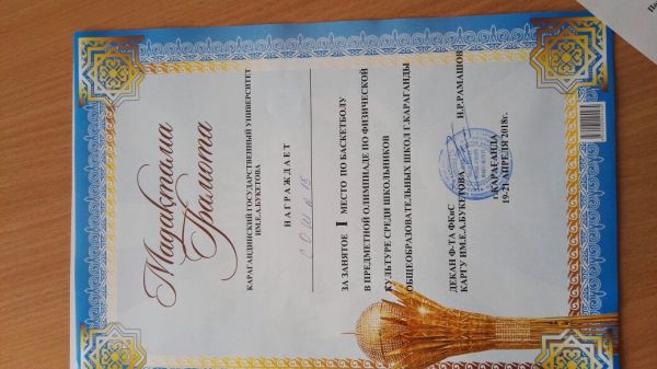 В предметной олимпиаде по физической культуре, КГУ СОШ№ 15 заняла 1 место по баскетболу! Поздравляем!!!
