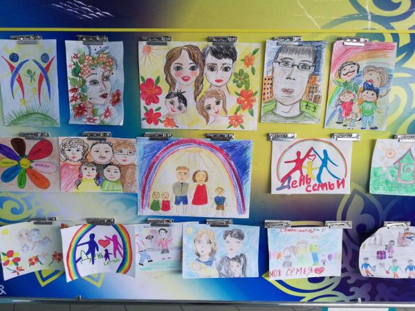 С16. 04.- по 22 .04 апреля прошла выставка рисунков учащихся 6 классов на тему "День многодетной семьи" и "Книга мой верный друг".