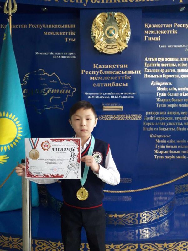 На чемпионате Карагандинской области по Кекушинкай Каратэ "Белый кубок" ученик 2 класса Муслим Аділ занял I место. Поздравляем!