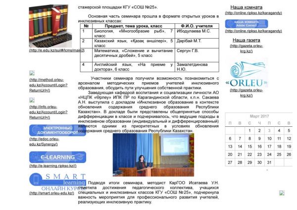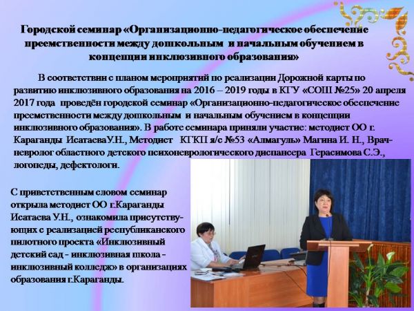 20 сәуір 2017 ж. мектебімізде «Организационно-педагогическое обеспечение  преемственности между дошкольным  и начальным обучением в концепции инклюзивного образования» тақ…