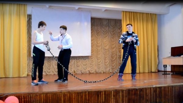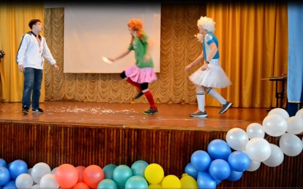В КВН играли две команды школьники, проживающие на "Проспект(е) молодости" и учителя, считающие себя "Особо опасны(ми)". Примирить творческий спор двух команд пыталось комп…