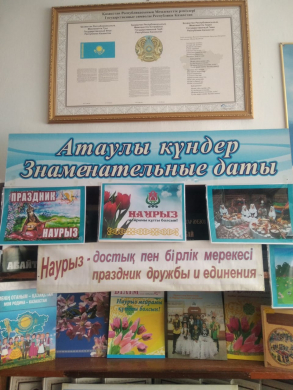 6 марта в библиотеке организована книжная выставка «Наурыз – достық пен бірлік мерекесі - Наурыз - праздник дружбы и единения», посвященная празднику Наурыз.