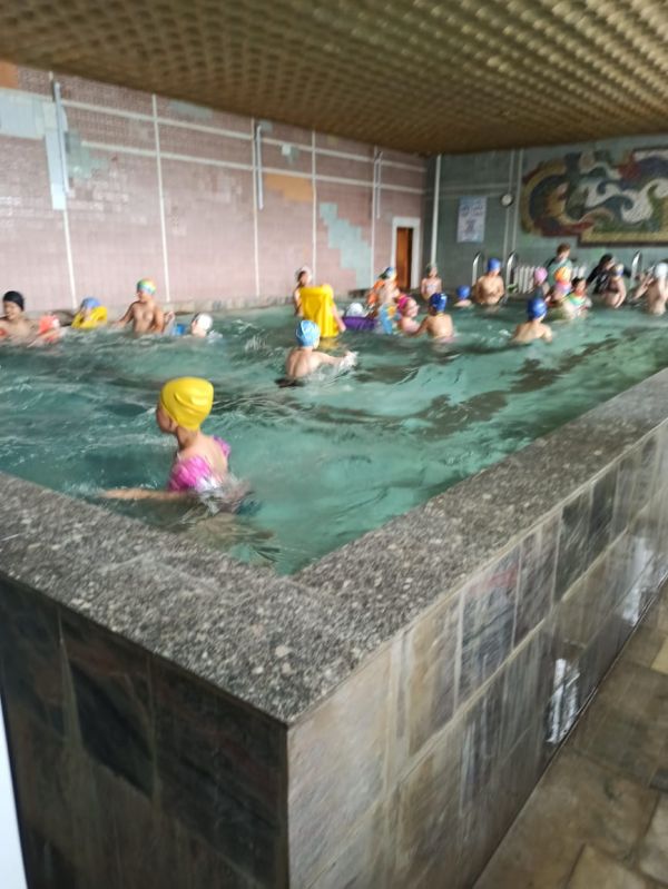 Жазғы лагерьдің екінші күнінде оқушылар "Дельфин" бассейініне барып, көңіл- көтерді. Мектептен тыс жерде оқушыларға ішкі тәртіп ережелері алдын ала айтылды.