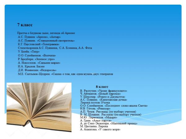 Мектеп оқушыларына ұсынылатын әдебиеттер тізімі