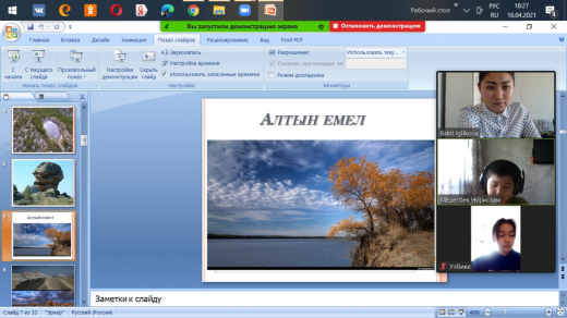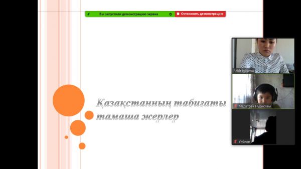 4 «А» сыныбында үштілдік апталығының жоспарына сәйкес «Құстар - біздің досымыз» тақырыбында ZOOM платформасы арқылы дөңгелек үстел өтті. Мақсаты: Құстар тіршілігі туралы тү…