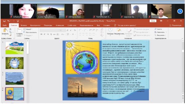 20.04.2021 жылы экологиялық сауаттылық апталығы аясында 5 «Б» сынып оқушылары арасында «Жердің қызуы бар» тақырыбында эко-сағат өткізілді.