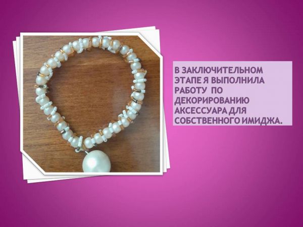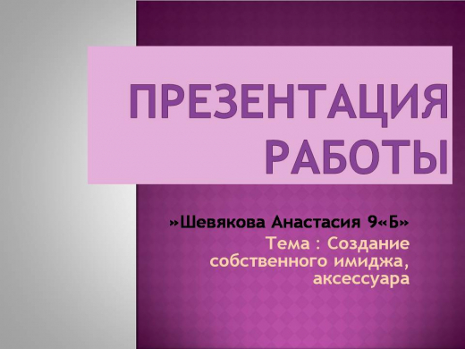 Презентация работы по художественному труду Шевяковой Анастасии ученицы 9 «Б» класса по теме: «Создание аксессуара для собственного имиджа».