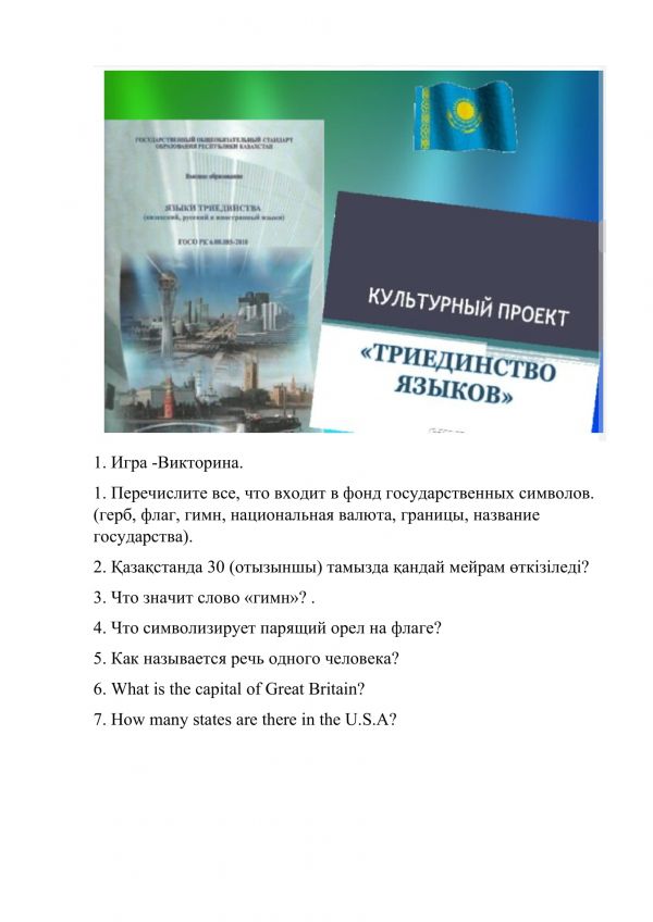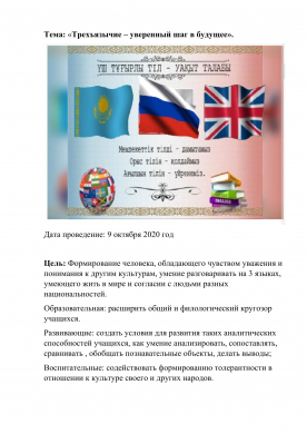 Қазан айының 5-де 9 "В" сыныбында мемлекеттік тіл саясатын насихаттауға арналған " Язык- важнейшее средство общения" атты сыныптан тыс іс- шара өткізілді. Бұл іс- шараның&n…