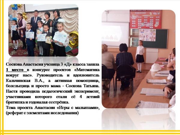 В школе, в районе, городе, области и в Республике проходят много конкурсов в которых принимают участие наши ученики. Приятно и почётно, когда твои ученики становятся на ступеньку пьедестала победите…